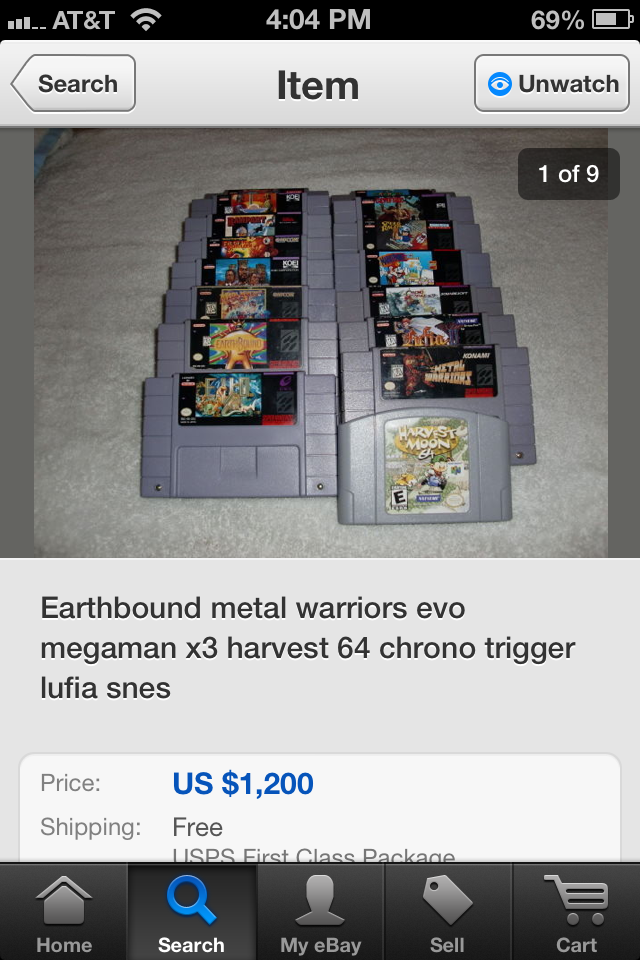 $1,200 me thinks not. Looks like about $900 worth of carts to me (if purchased individually), not to mention that being in a lot like that waaaaay narrows the potential buyer list. Would like a lot of those carts, but not for that money. Maybe like 700-750...