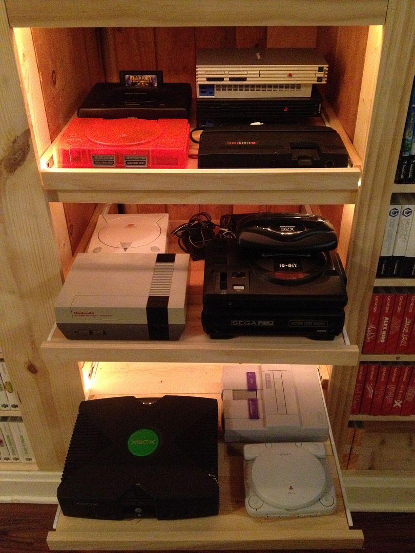 Newly re-kajiggered wall (gaps are intentionally left open for games on hand which need to have covers made).