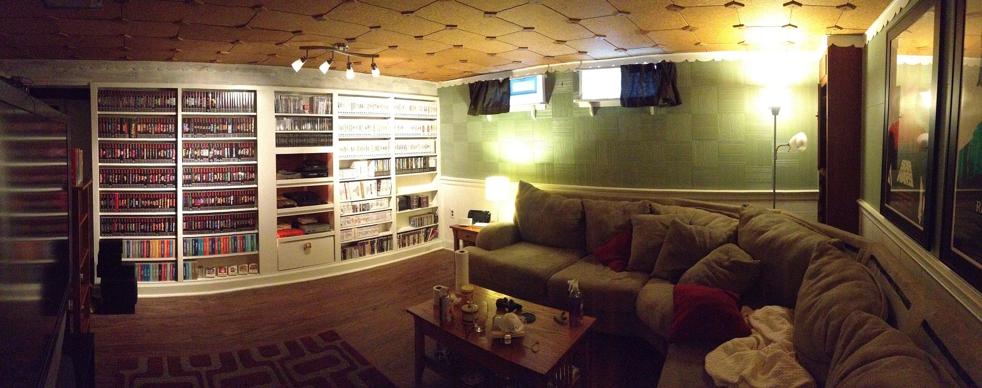 Alright, this shoulda happened a long time ago. Flip-flopped the room. Feels way more open and far less cavernous. Also added more track lighting for the music and movie shelves.