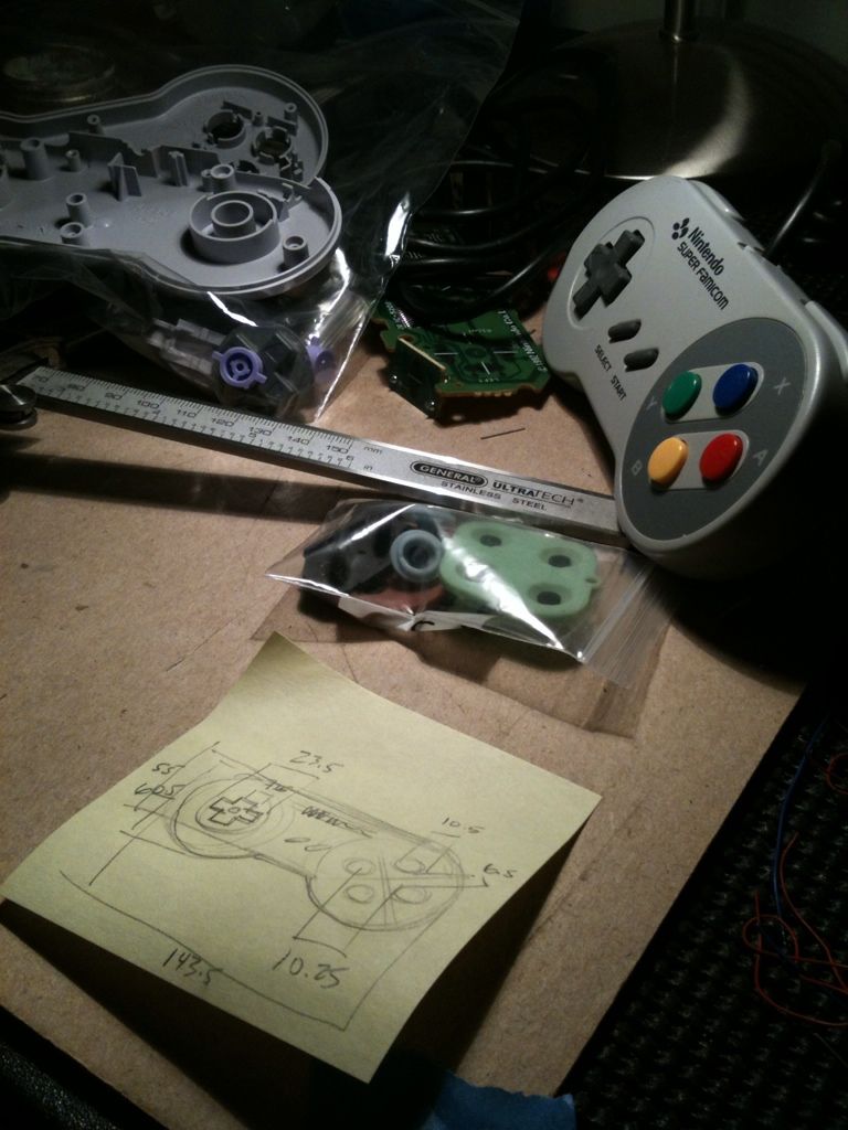 Looking at prices for wireless controller parts. I don't really want to redesign controllers since it would be extra work, extra $$$, and sorta pointless since the SNES controller is such an excellent design in the 1st place. If I do, it won't be a "re-design" so much as a revision that would allow me to more easily pack wireless bits inside and mount points for a discreet on/off switch & LED indicator.