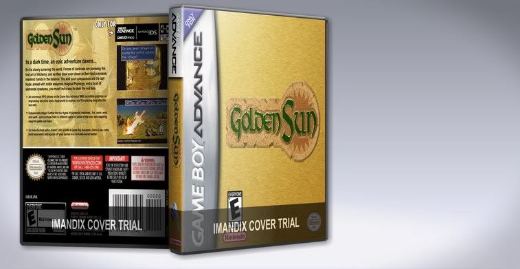 I was contemplating working on another Legend of Zelda custom cover, and maybe get more use out of that gold pattern I found, when it occured to me: why don't we have a gold-colored Golden Sun cover? For that matter, why don't we have any custom Golden Sun Covers? So I set out to do just that. And then I realized why no one has tackled a custom Golden Sun cover: It's almost impossible to find high resolution art for the game. Even fanart is hard to come by. So I went with a design that is less my style, and more minimalistic. I think it came out all right this way.
