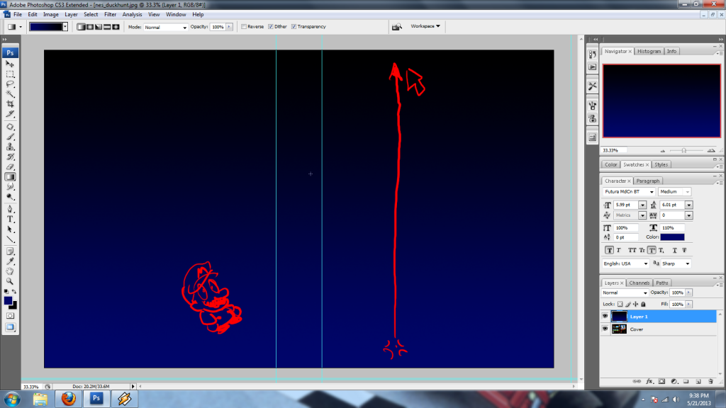 Ok, you opened up a random NES cover into Photoshop, I use CS3, so if you are usingCS6 or CS2, processes may vary, but hopefully this sends you on the right path.
