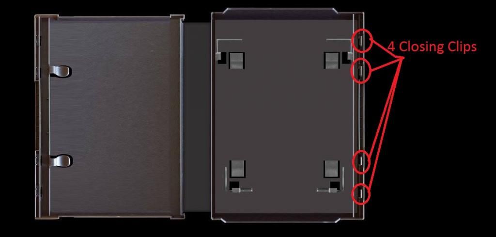 4.) Top Game Cart Holding Clips: When you place a game cart into the case on the top right holding clip rests over the